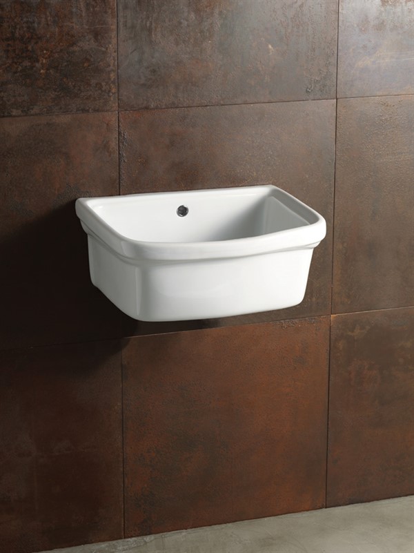 Lavatoio in ceramica bianca con strizzatoio, serie LAUNDRY. Dal design classico, totalmente MADE IN ITALY. Fissaggio NON incluso. Sifone e rubinetto non inclusi. Garanzia 5 anni.