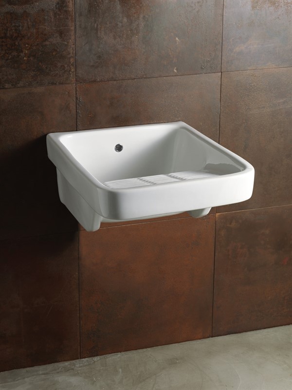 Lavatoio in ceramica bianca con strizzatoio, serie LAUNDRY. Dal design classico, totalmente MADE IN ITALY. Fissaggio NON incluso. Sifone e rubinetto non inclusi. Garanzia 5 anni.