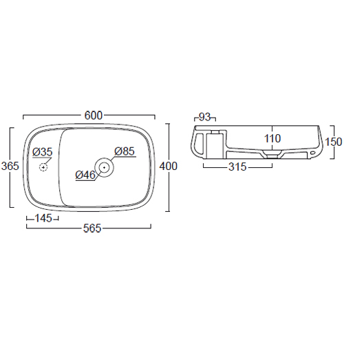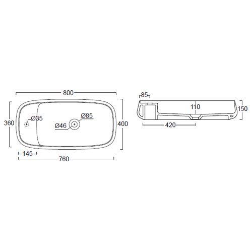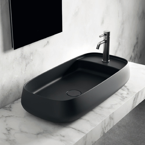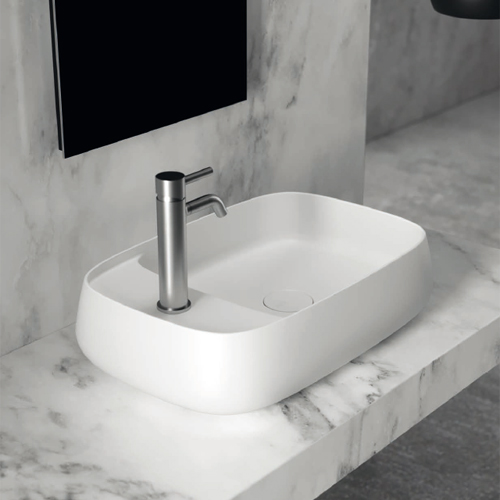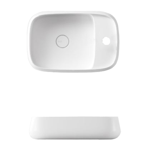 Lavabo d'appoggio in porcellana bianca monoforo, serie NOW TWO. Dal design moderno, totalmente MADE IN ITALY. Fissaggio NON incluso. Sifone e rubinetto non inclusi. Garanzia 5 anni.