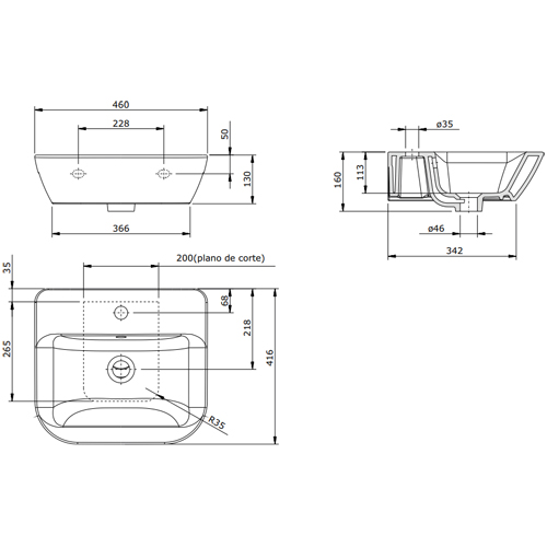 Lavabo in ceramica bianca, serie WILD. Dal design monderno, totalmente MADE IN PORTOGALLO. Fissaggio NON incluso. Sifone e rubinetto non inclusi. Garanzia 5 anni.