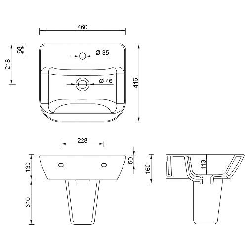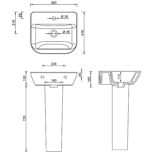 Versioni disponibili: lavandino sospeso, lavandino con colonna sospesa, lavandino con colonna appoggio.