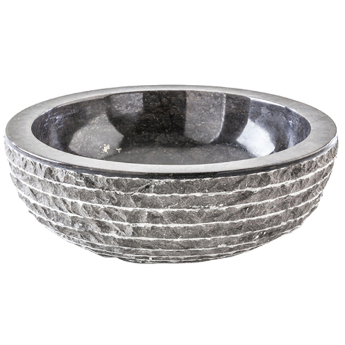 Lavandino da appoggio in marmo della serie MERAPI. Il marmo, proveniente dalle cave a sud del Monte Merapi, è realizzato a mano. Lucidato internamente e sul bordo superiore, è grezzo e lavorato a fresa e scalpello sull’esterno.