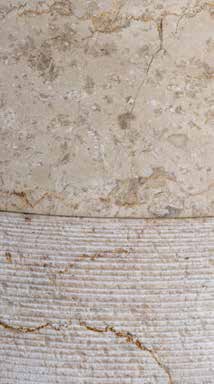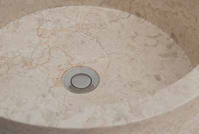 Lavandino d' appoggio in marmo della serie CREAM. Composto da due parti, la prima e in marmo levigato sia esternamente che interamente. La seconda parte è realizzata decorando il marmo grezzo con un effetto tornitura. Il tipo di lavorazione usata per la base può creare incrinature o crepe nel marmo che non compromettono in alcun modo l'integrità o la sicurezza del lavabo. Tali situazioni non vengono considerate come difetti del prodotto.
