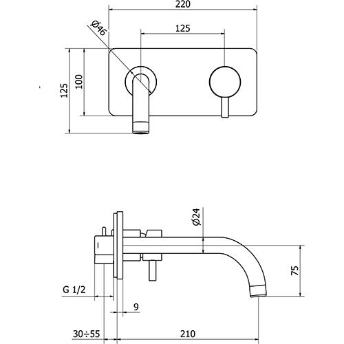 Miscelatore lavabo incasso ottone con piastra MODE ONE