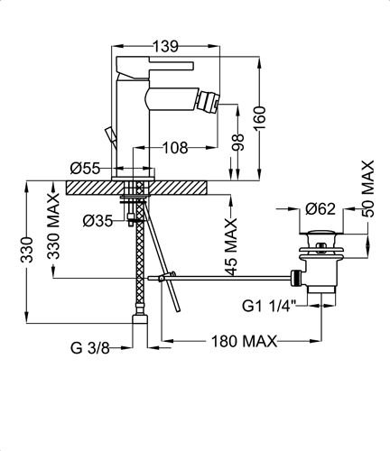 CARATTERISTICHE: MADE IN ITALY, miscelatore lavabo, corpo in ottone cromato, design moderno, attacchini M10x1 in acciaio inox 500 mm, attacco G 3/8", scarico automatico da 1 1/4", cartuccia con distributore uscita alta, basetta, aeratore NEOPERL con rete rimozione calcare, garanzia sul prodotto di 5 anni, imballo in scatola singola.