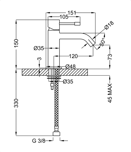 CARATTERISTICHE: MADE IN ITALY, miscelatore lavabo, corpo in ottone cromato, design moderno, attacchini M10x1 in acciaio inox 500 mm, attacco G 3/8", scarico clic-clac da 1 1/4", asta di scarico, cartuccia aperta, basetta, aeratore NEOPERL con rete rimozione calcare, garanzia sul prodotto di 5 anni, imballo in scatola singola.