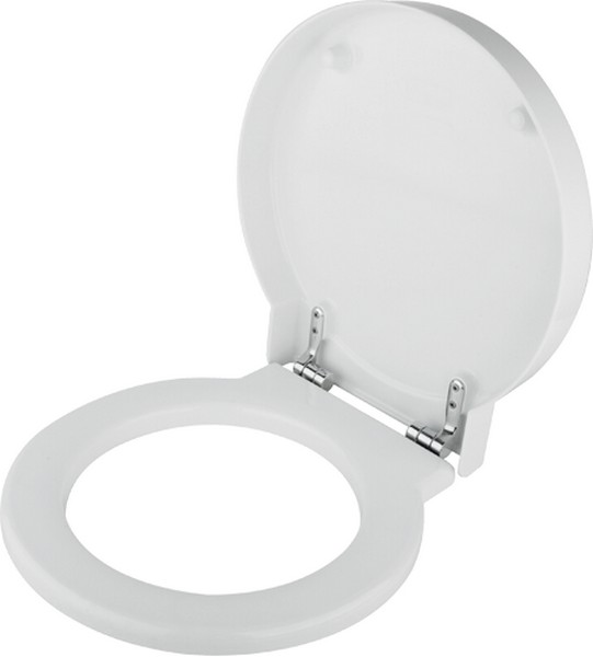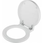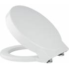 Sedile wc speciale in duroplast bianco, modello TUNIS, peso netto 1,90 kg. Materiale di fissaggio incluso nella confezione.