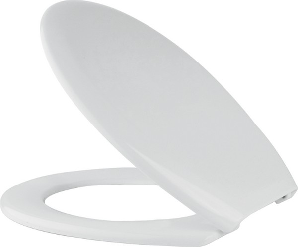 Sedile wc universale in duroplast bianco, modello IRELAND, peso netto 1,60 kg. Materiale di fissaggio incluso nella confezione.