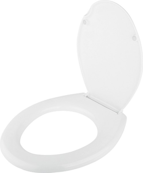Sedile wc duroplast di forma universale e colore bianco, modello ANDORRA, peso netto 1,55 kg. Materiale di fissaggio incluso nella confezione.